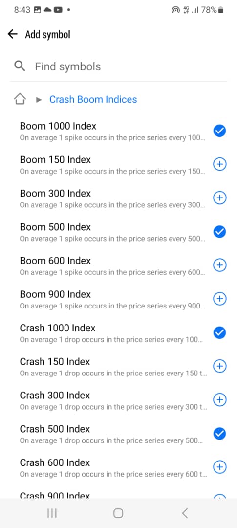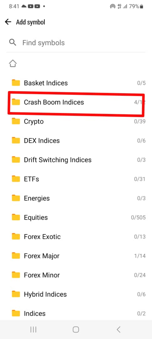 Then search and select “Crash Boom indices” as shown below;